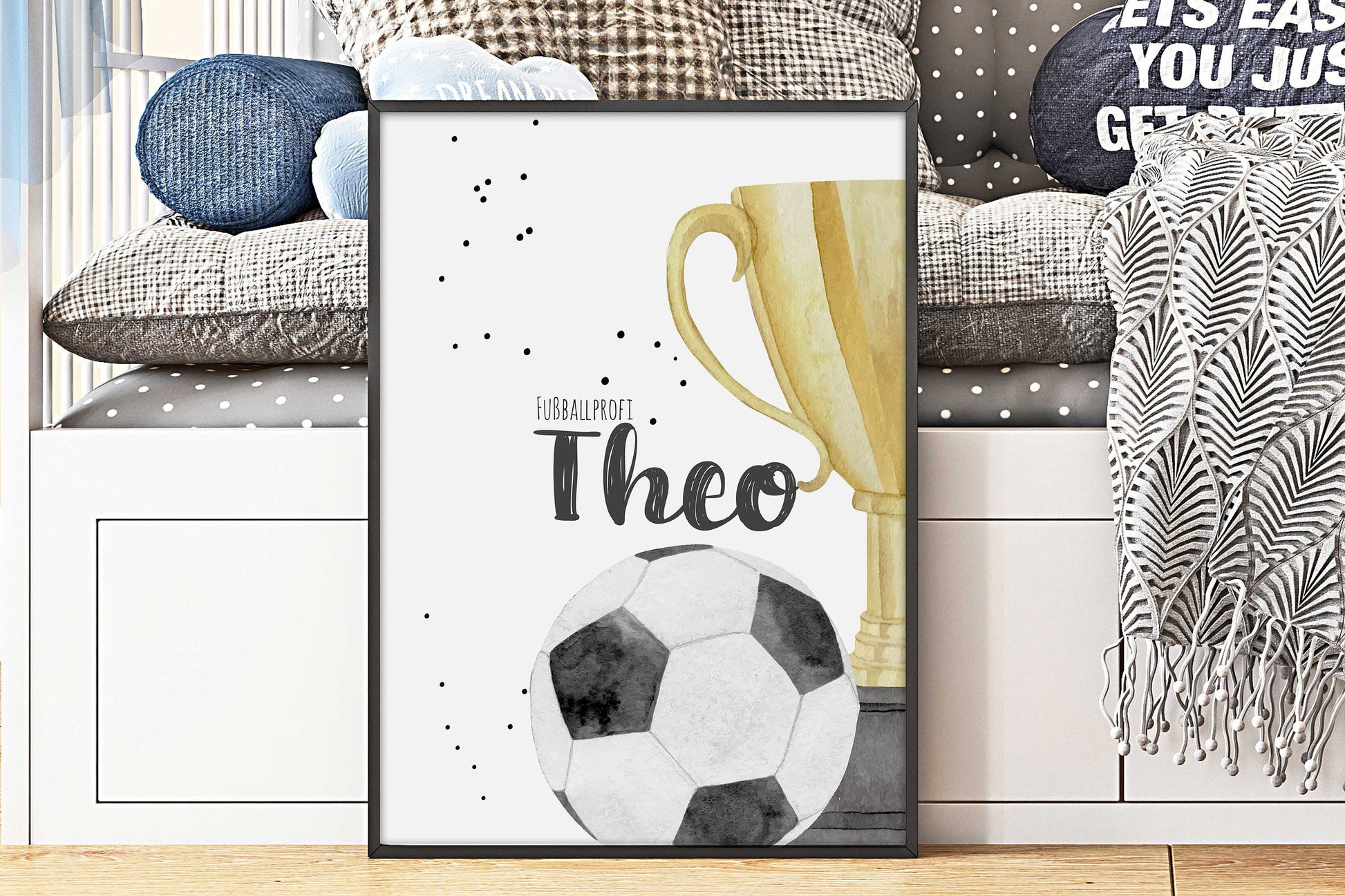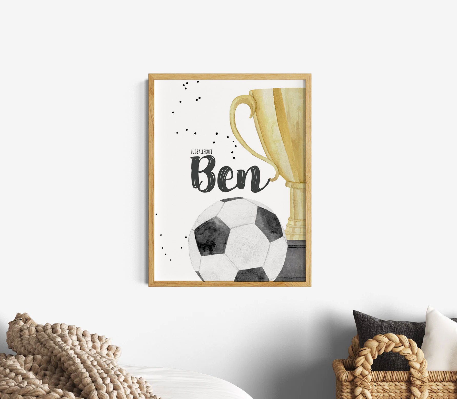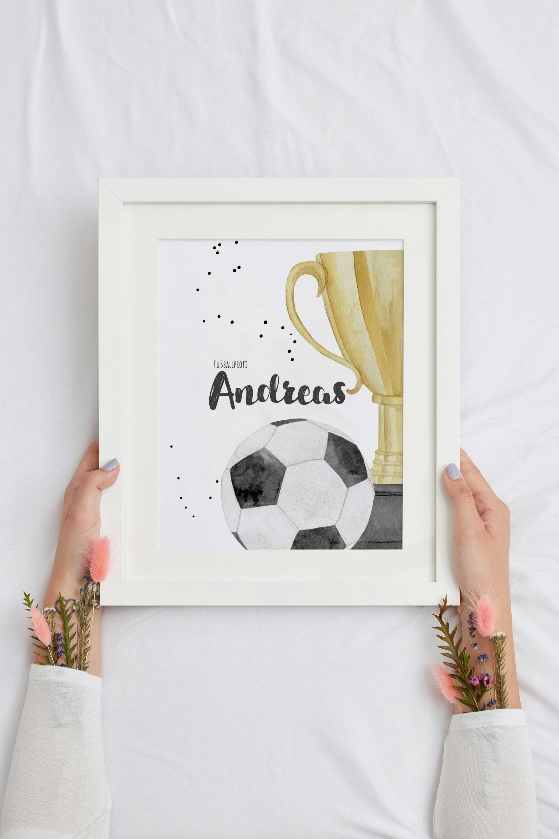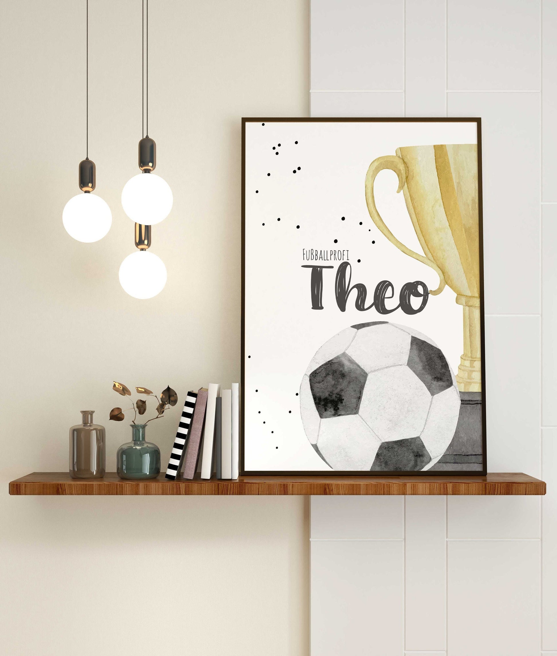 Ein personalisiertes Fußball-Fan Geschenk als Bild mit Namen und wählbarem Titel für Männer und Jungs als Wanddeko im Kinderzimmer, Jugendzimmer, Büro, Spielzimmer oder als Geschenkidee für Fußballbegeisterte.