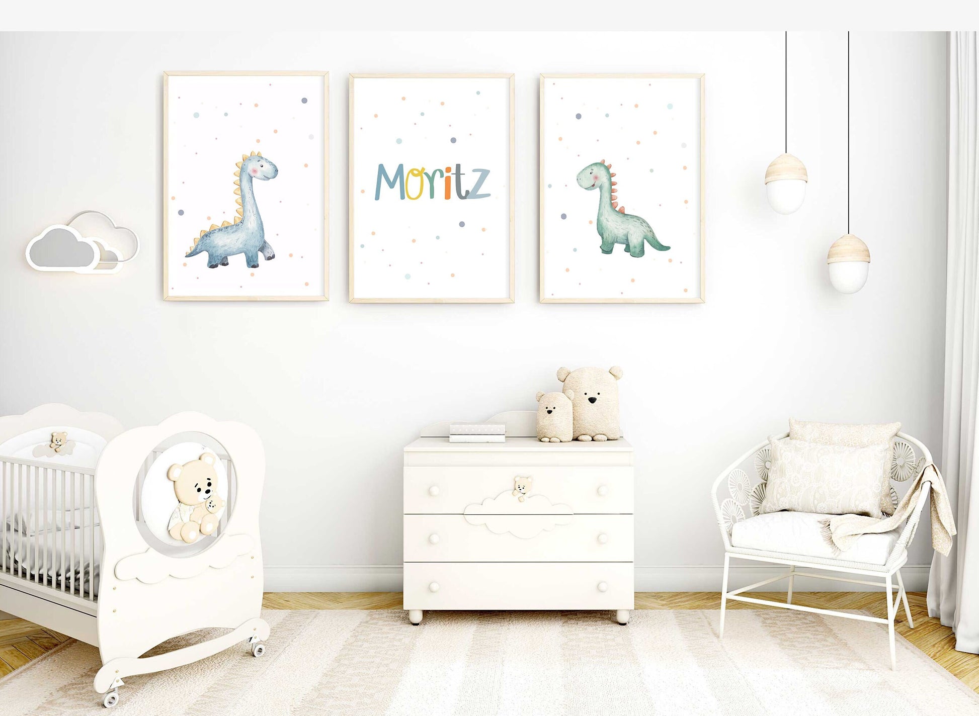 Dieses Dino 3er Kinderposter Set im skandi und boho Stil für Jungen oder Mädchen eignet sich als grüne und blaue Wandgestaltung für das Babyzimmer, Kinderzimmer, Spielzimmer Jungenzimmer und Mädchenzimmer. Auch dient dieses Bilderset als Geschenkidee für Kinder und für den ersten Geburtstag oder zur Taufe und Geburt.